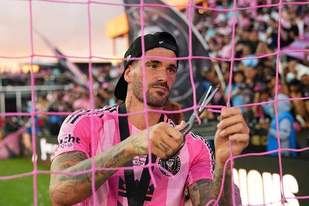 随迈阿密国际夺冠,德保罗赛后剪下主场球网留念